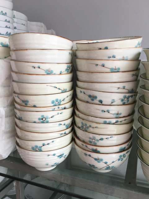 Nhà cửa & Đời sống > Bộ đồ bàn ăn > Tô || Bộ 10 bát cơm men kem hoa đào xanh - BỘ ĐỒ ĂN CAO CẤP BÁT TRÀNGCòn hàng