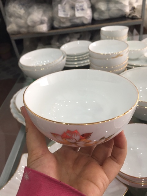 Nhà cửa & Đời sống > Bộ đồ bàn ăn > Dĩa || Bộ 10 bát cơm men trắng vẽ sen vàng kim - bộ đồ ăn cao cấp nát tràngCòn hàng