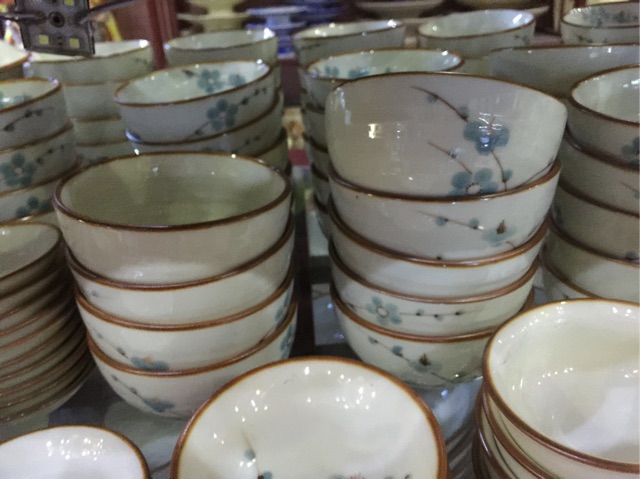 Nhà cửa & Đời sống > Bộ đồ bàn ăn > Tô || 10 bát cơm vẽ hoa đào xanh Bát TràngCòn hàng
