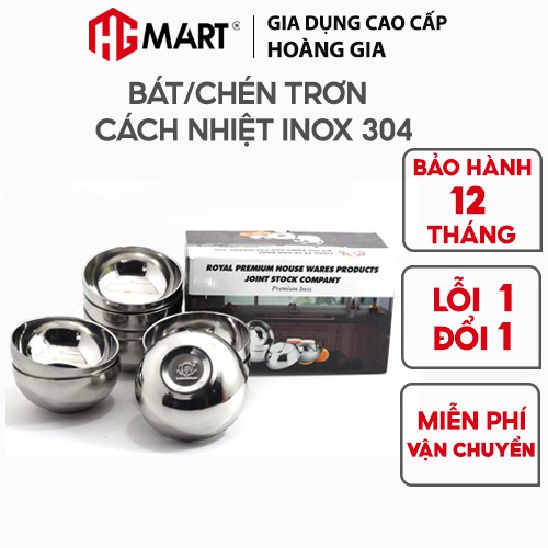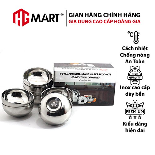 Bộ 10 Bát Trơn Inox cách nhiệt chống nóng thương hiệu Hoàng Gia