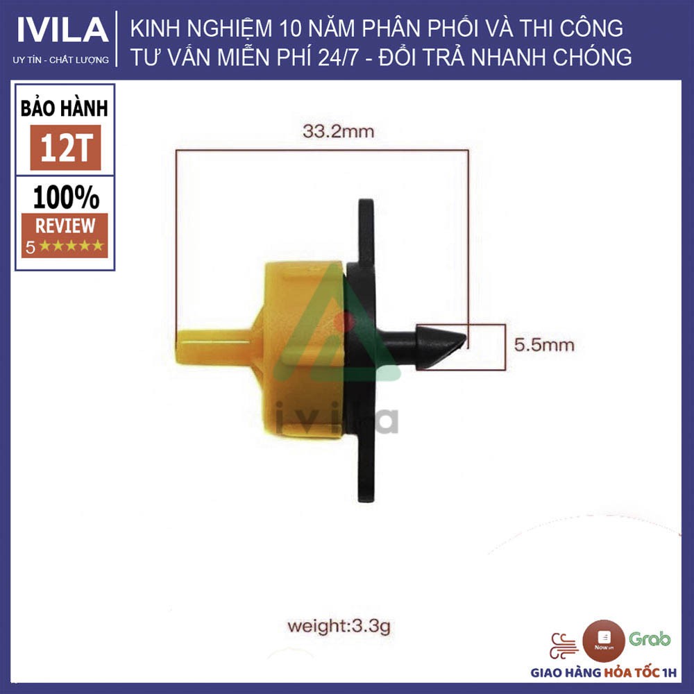 Đầu nhỏ giọt bù áp màu đen: Lưu lượng tưới 4 lít 1 giờ