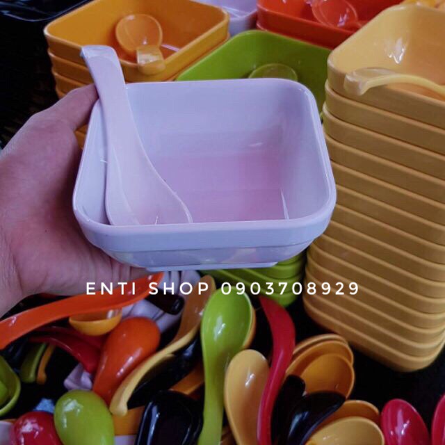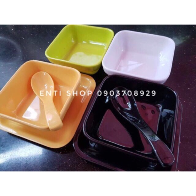 Bộ bát phíp vuông. Shop sét sẵn combo tô và muỗng/thìa, nếu bạn cần mua thêm dĩa nguyên bộ thì inbox shop gửi link nha.Màu sắc: Đen, cam, xanh lá, trắng, kem, đủ màu(nhiều màu)