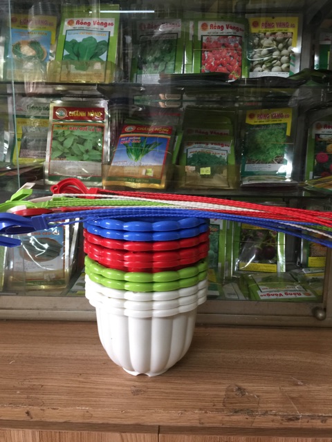 Combo gồm 10 chậu, kèm móc treo nhựa.Đủ màu như hình