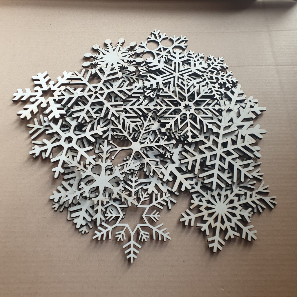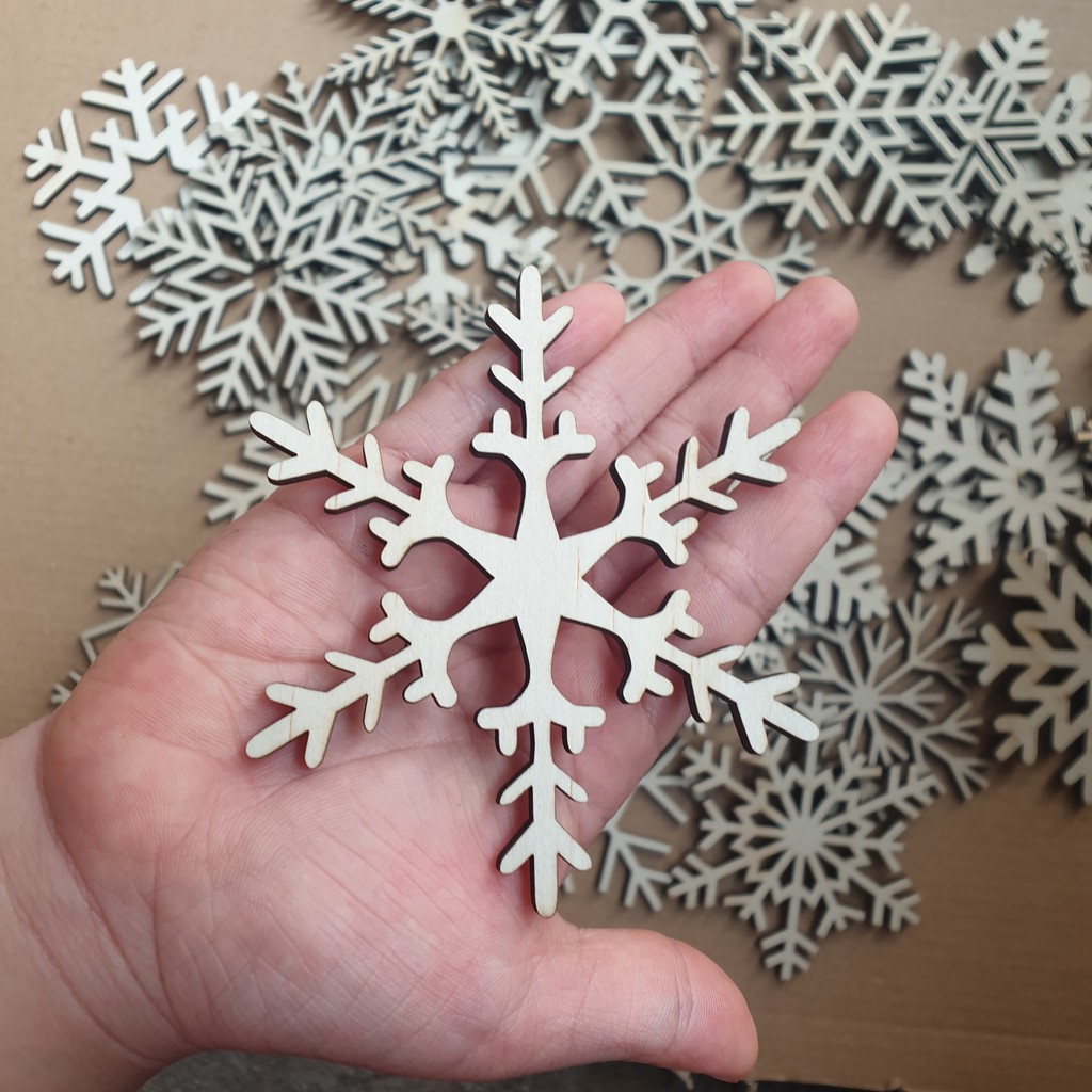 Sản phẩm bao gồm 10 bông tuyết khác nhau, kích thước rộng 7.5cmChất liệu plywood 3mm cao cấp, 2 mặt sạch đẹp. Bạn có thể sáng tạo sơn/vẽ lên một cách dễ dàng.