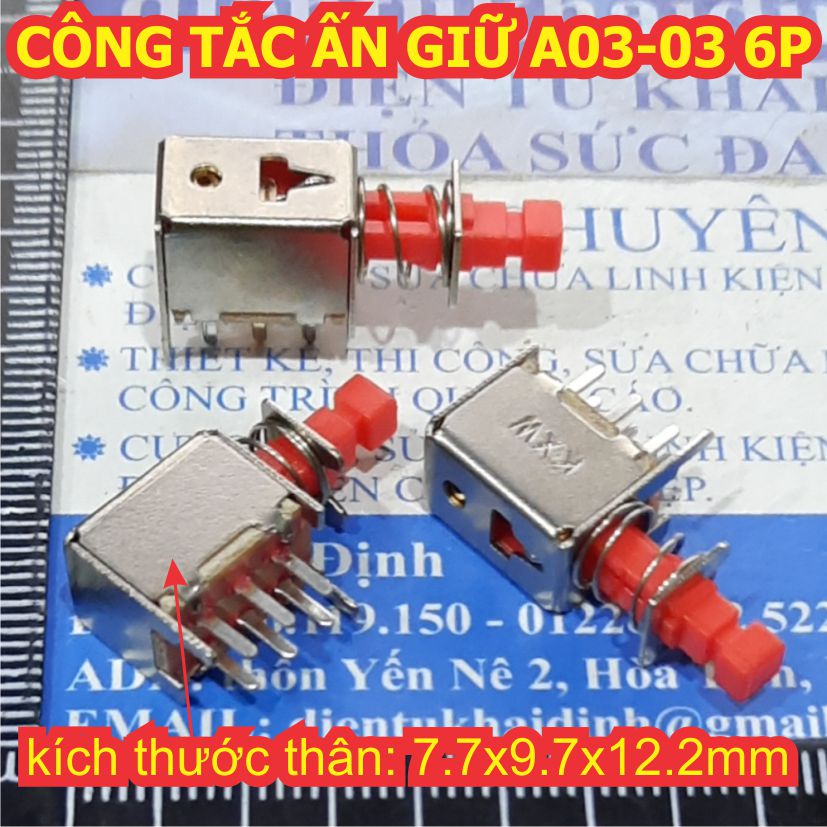 10 cái CÔNG TẮC nút nhấn ẤN GIỮ A03-03 6P 6 chân kde1949