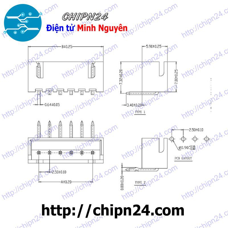 - Khoảng cách giữa hai chân: 2.54 mm (1 inch)