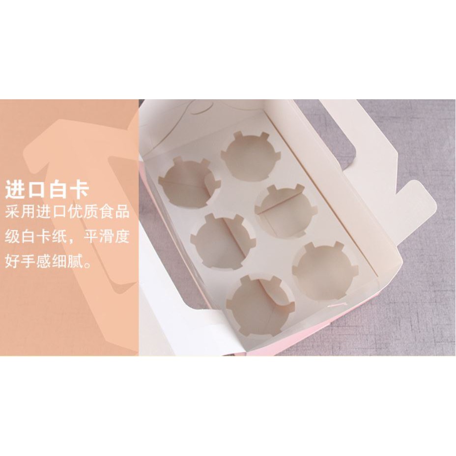 Sản phẩm gồm 10 cái hộp cupcake 6 ô có quai xáchKích thước hộp: 23.6 x 15 x 9cm