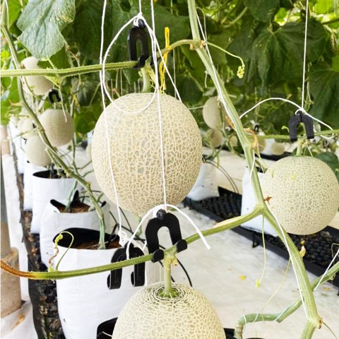 10 Cái Móc treo trái dưa lướiMô tả: Móc treo trái dưa lưới là dụng cụ chuyên dùng trong canh tác dưa lưới, dưa lê hoặc một số loại trái khác có dạng dây leo. Do đặc thù trái rất nặng, thường trọng lượng trái vượt quá sức chịu của thân dây nên cần phải có dụng cụ nâng đỡ trái. Ngoài ra, sử dụng móc để nâng đỡ trái giúp dây và trái phát triển tốt hơn, tránh tay nặng quá làm hại dây và đặt biệt là tạo cuốn trái có hình chữ T sau này thu hoạch nhìn rất đẹp mắt.