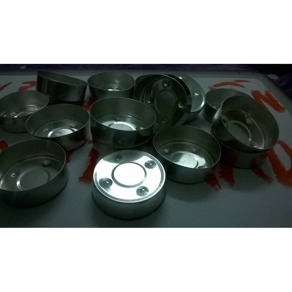 Vỏ để làm nến tealightChất liệu: Nhôm, cuốn biên, đường kính 3,7cm, cao 1,3cm, đựng khoảng12g sáp