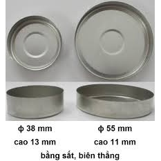 Vỏ tealight sắt: đường kính 3,7cm, cao 1,3cm, đựng khoảng12g sáp, chất liệu sắt cứng, không bị móp méo như vỏ nhôm, có thể tái sử dụng nhiều lần