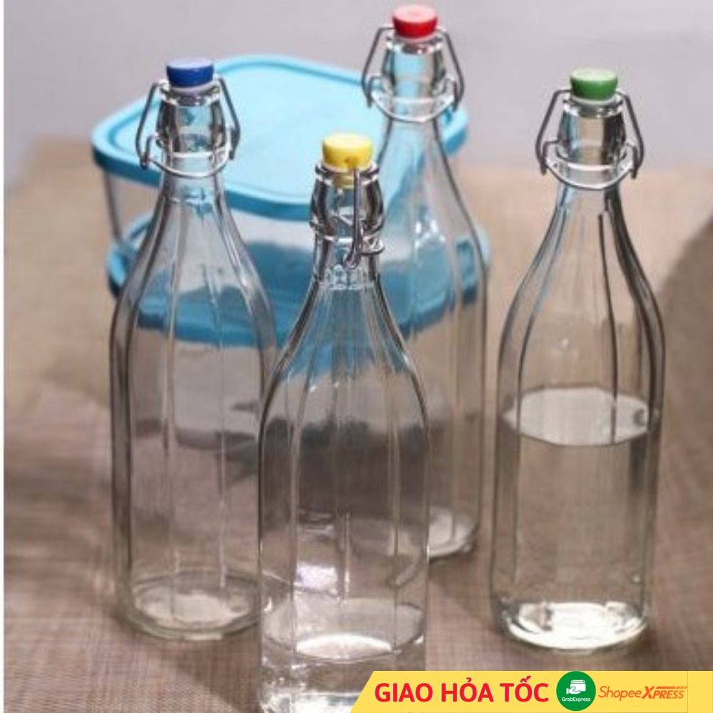 Giới thiệu [10 cạnh] Chai thủy tinh nắp cài Oxford kín hơi 10 cạnh nhập khẩu Ý(Italy) 1 lít thương hiệu Bormioli Rocco