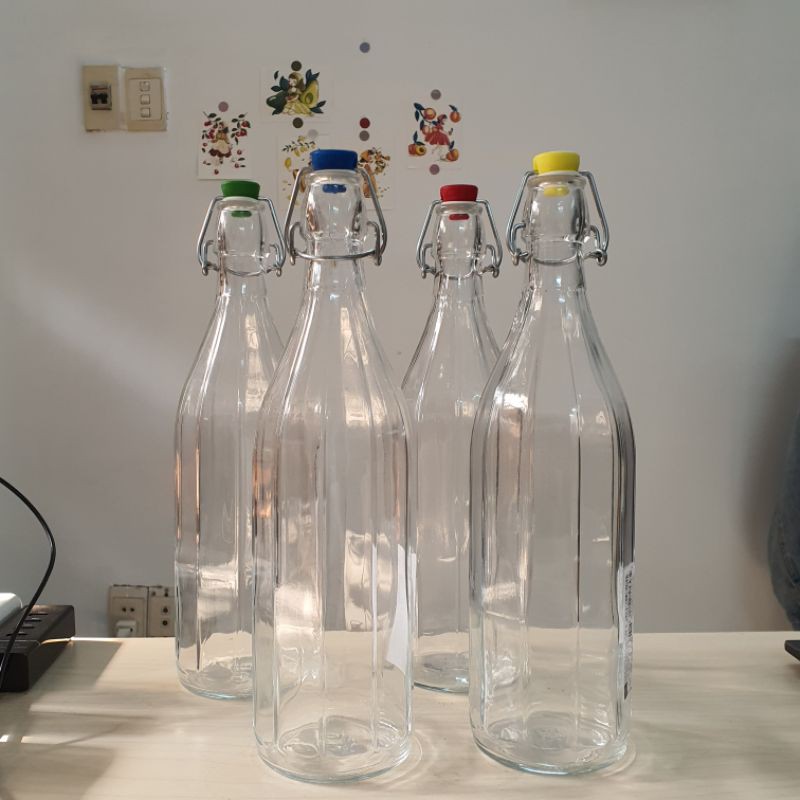 Nhà cửa & Đời sống > Bộ đồ bàn ăn > Bình nước & phụ kiện || [10 cạnh] Chai thủy tinh nắp cài Oxford kín hơi 10 cạnh nhập khẩu Ý(Italy) 1 lít thương hiệu Bormioli RoccoCòn hàng
