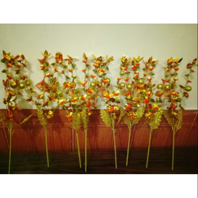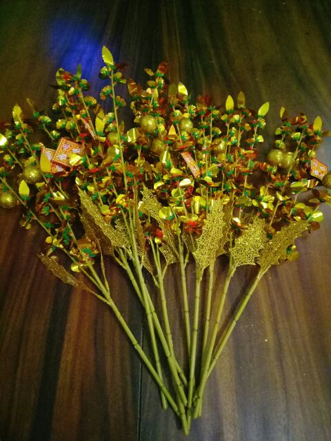 -Mai ngọc 3 chẽ loại 1 với 2 quả nhũ, 1 khánh, 2 lá dưới là nhũ mỗi cành sẽ gồm 3 chẽ bằng nhựa rất bền dùng được mãi mãi khi nào cũ mới phải bỏ đi chứ không như các loại bằng tre, lứa khách nhé. Khách lưu ý hàng loại 1 quả và lá dưới sẽ bằng nhũ lấy lánh sang trọng khác biệt không phải bằng giấy lá ngọc nha... 😍😍- Sỉ sll ib t tạo combo