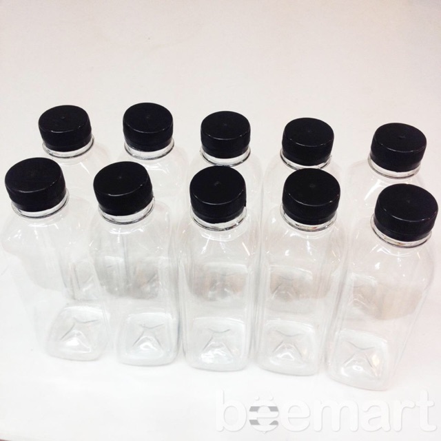 Nhà cửa & Đời sống > Dụng cụ nhà bếp > Dụng cụ mở hộp || 10 chai nhựa vuông nắp đen 350mlCòn hàng