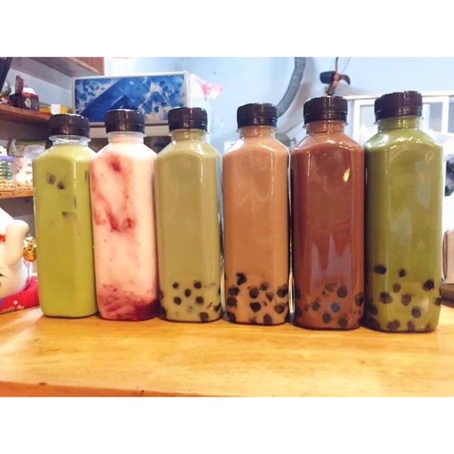 Chai nhựa vuông nắp đen 350ml tiện dụngDùng để đựng nước.. đặc biệt là trà sữa