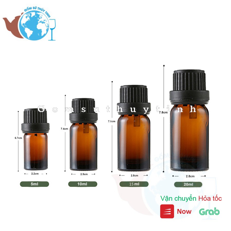 Bộ 10 Chai Thủy Tinh Đựng Tinh Dầu Nhỏ Giọt 10mlChai Thủy Tinh Nhỏ Giọt 10 ml