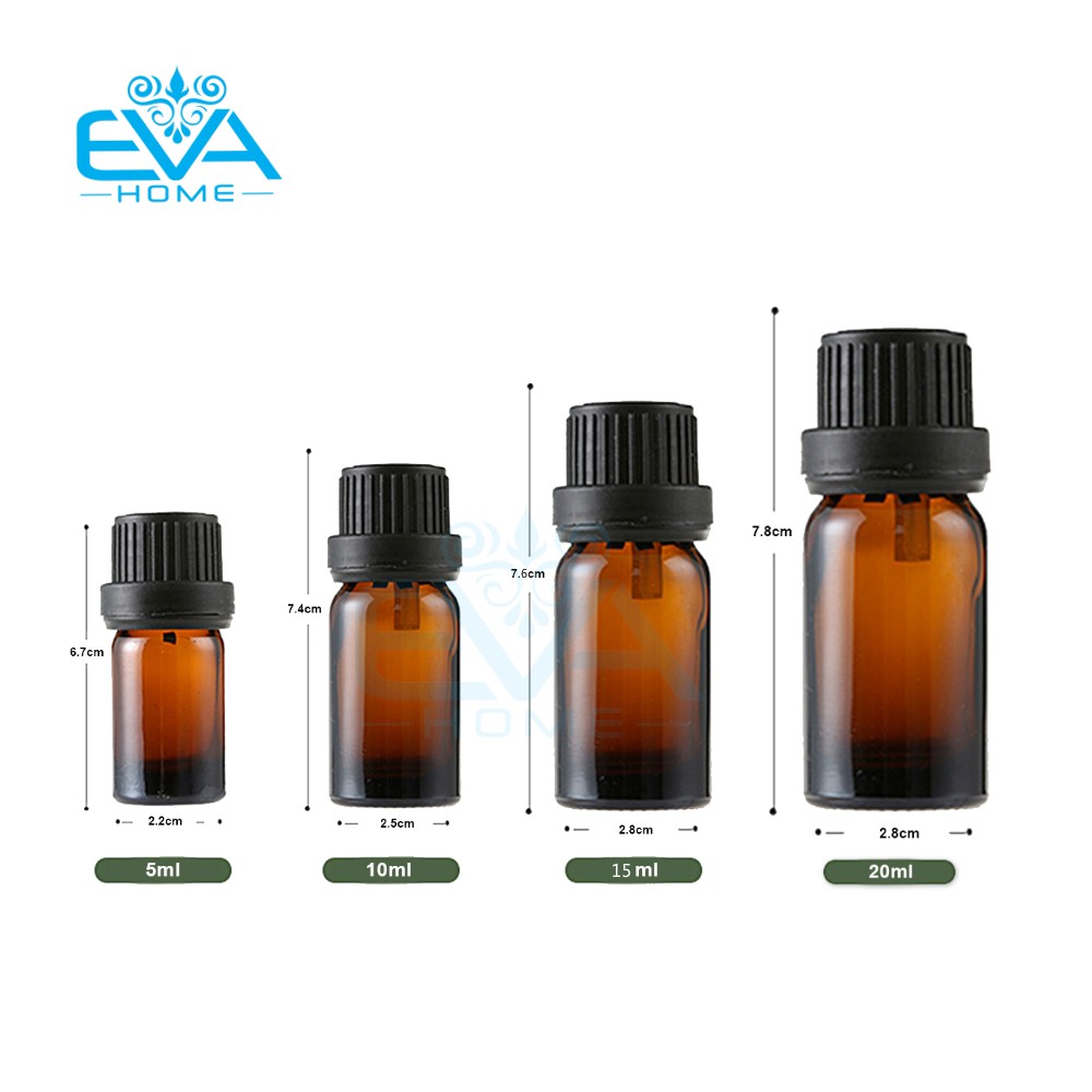 Bộ 10 Chai Thủy Tinh 20ml Đựng Tinh Dầu Nhỏ GiọtKích thước: