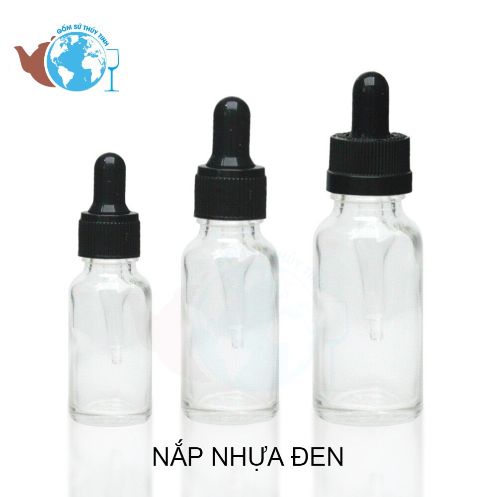 Chai Tinh Dầu Thủy Tinh Bóp Giọt 5 mlKích thước: Đường kính 2.2cm X chiều cao luôn nắp 7.2cm