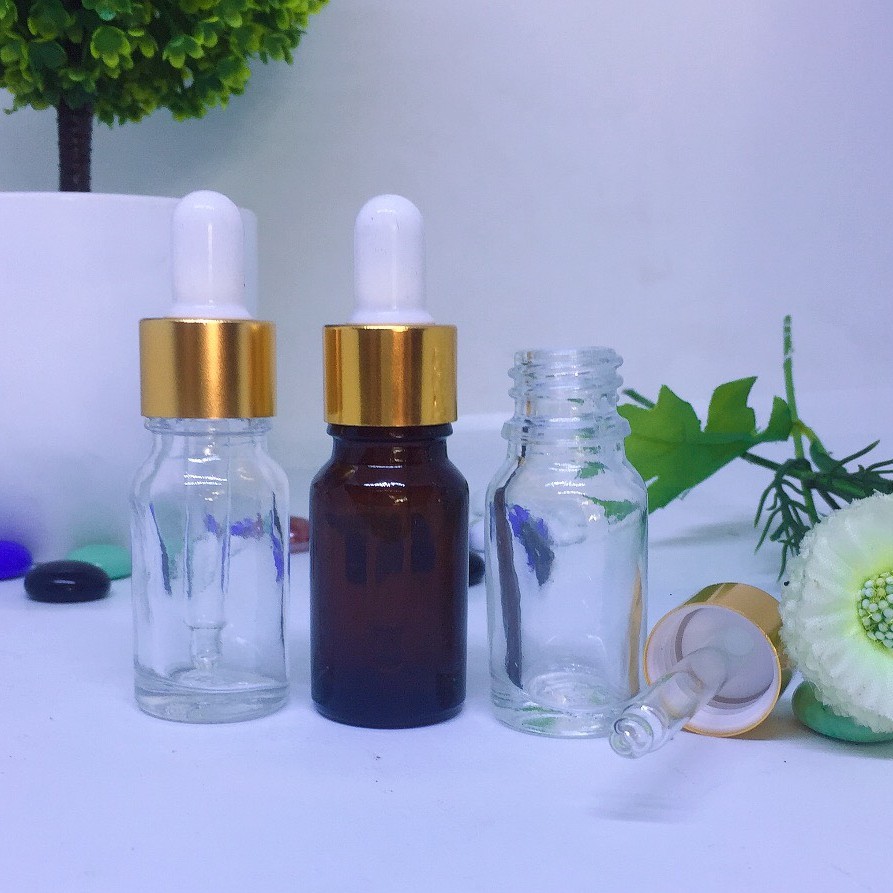 10 Chai thủy tinh trong / nâu nắp bóp vàng 10ml _lọ chiết serum_ChaiLoHuMyPham