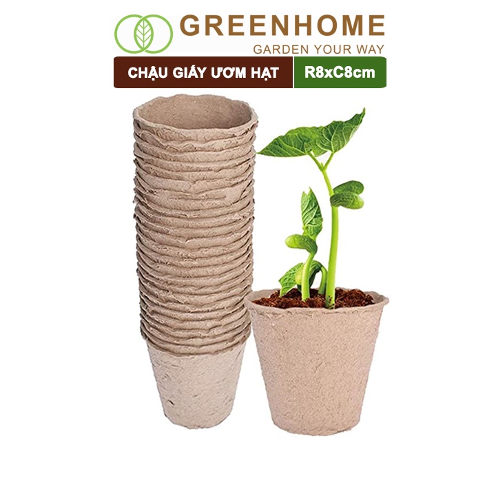 Nhà cửa & Đời sống > Làm vườn > Chậu cây || 10 Chậu giấy ươm hạt, D8xR8cm, bằng giấy hữu cơ tự phân huỷ, tiện lợi, ươm cây giống, hạt giống |GreenhomeCòn hàng