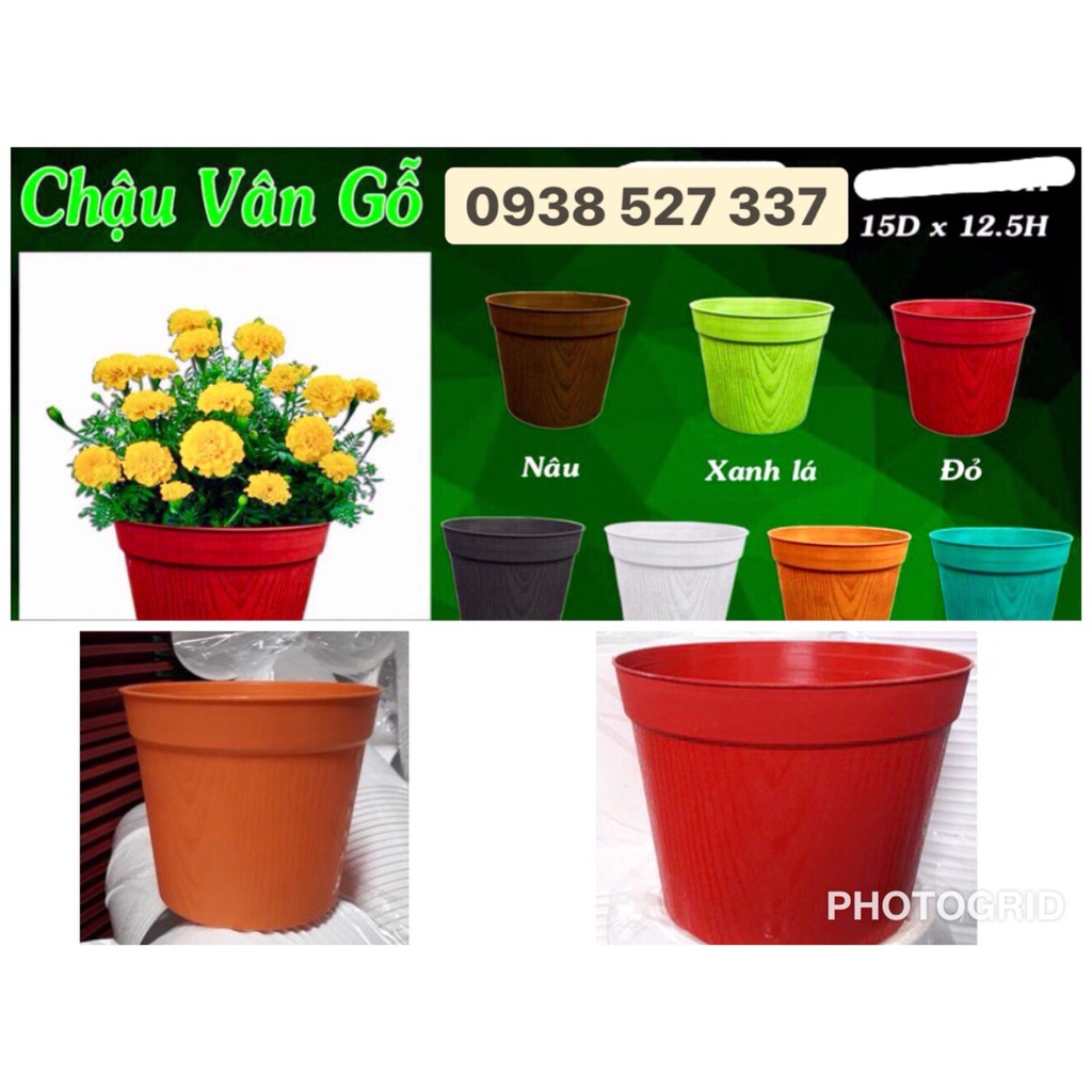 Nhà cửa & Đời sống > Làm vườn > Chậu cây || Bộ 10 chậu hoa nhựa cứng vân gỗ đường kính 15cm cao 12,5cm giá rẻCòn hàng