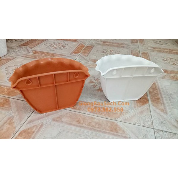 Chậu trồng hoa ốp tường thông mình, chậu có lưới thông minh trong chậu tạo với đáy chậu một khoảng không chứa nước thừa, không cho nước chảy ra ngoài làm san nhà luôn sạch sẽ, tường không bị bẩn.Chậu được làm nhựa PP dẻo bền, nhẹ.