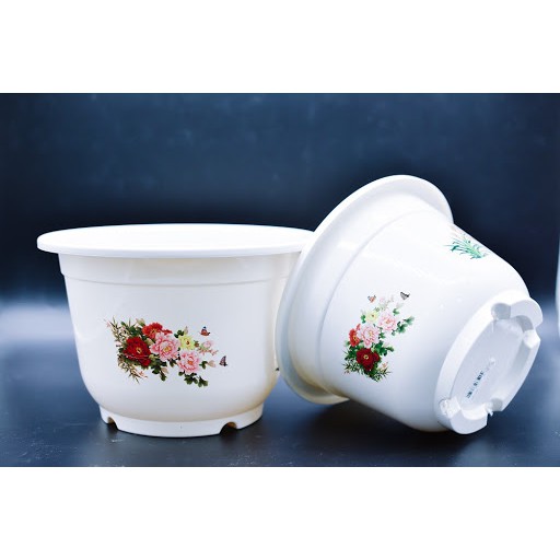 10 Chậu Nhựa Trồng Cây Giá rẻ in hoa văn bốn mùa A300