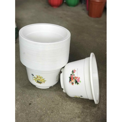 Chậu nhựa in hoa, thiết kế đơn giản, sang trọng, đẹp mắt, phù hợp trang trí cây cảnh nội ngoại thất