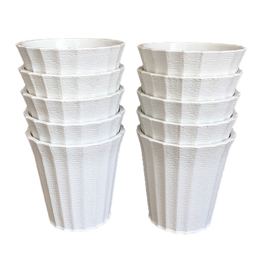 Bộ 10 chậu trồng hoa khía nhựa màu trắng size 13x13cm