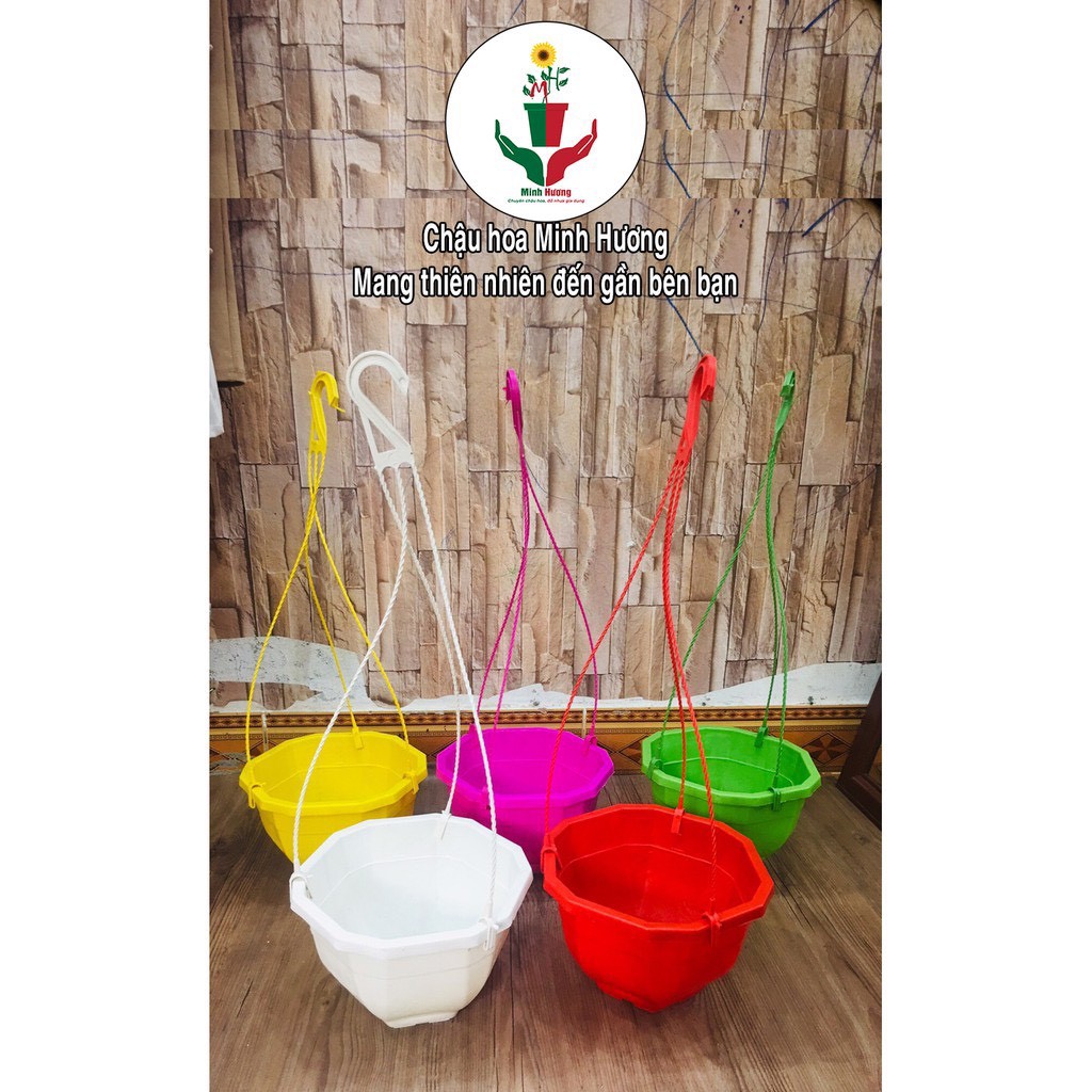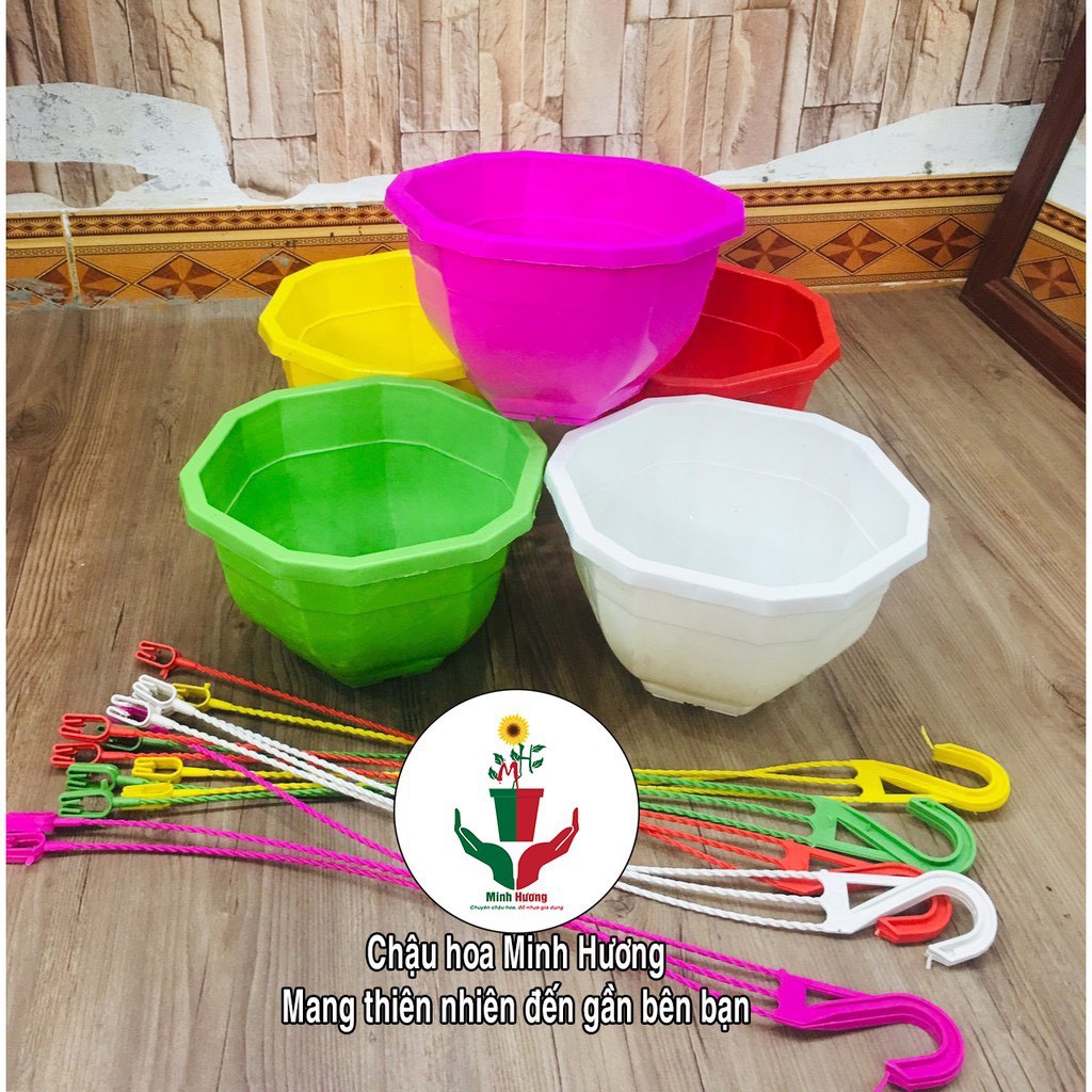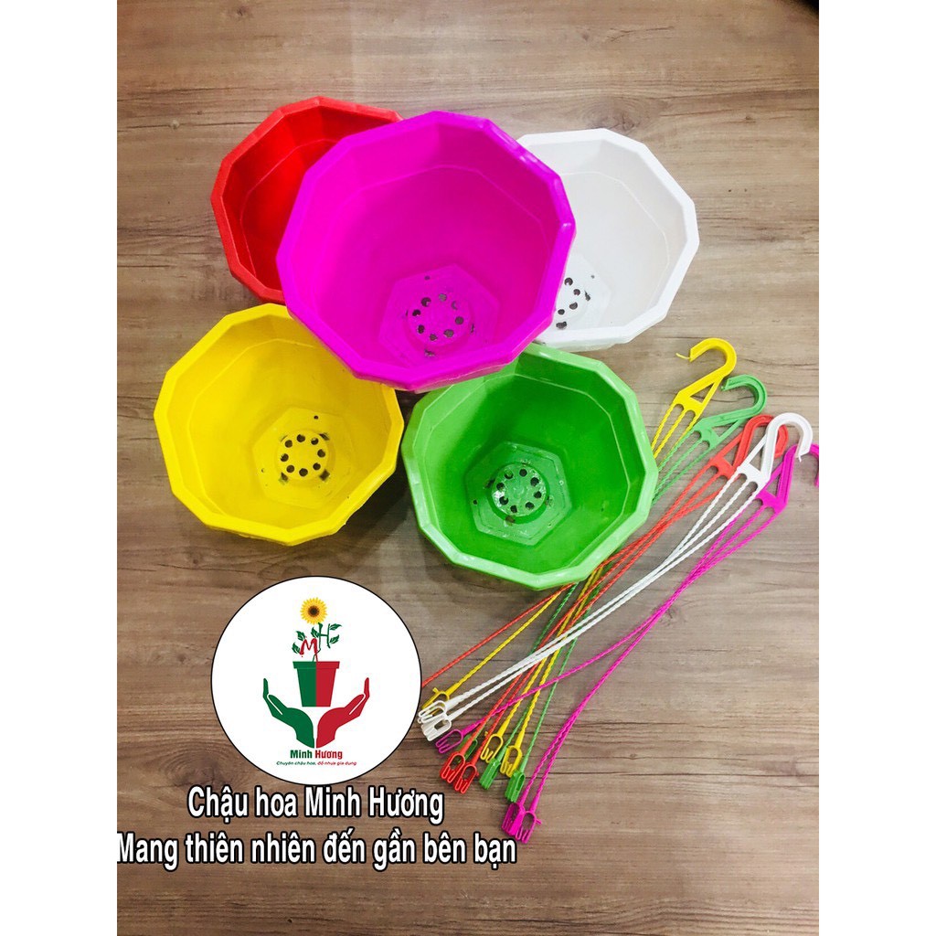 Nhà cửa & Đời sống > Làm vườn > Chậu cây || 10 chậu trồng hoa nhựa lục giác kèm quai treo miệng rộng 22cm, đáy 15cm, cao 14cmCòn hàng