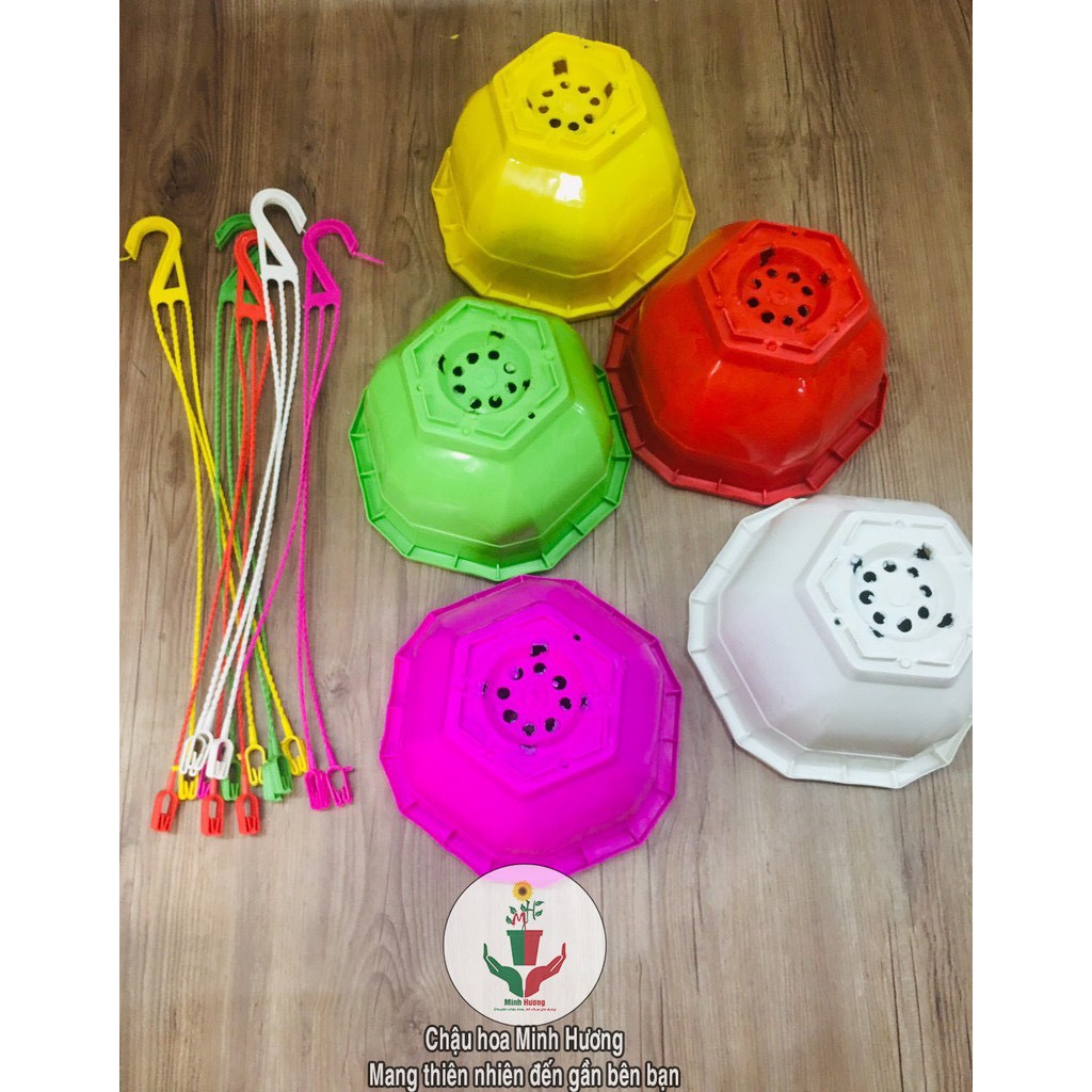 10 chậu trồng hoa nhựa lục giác kèm quai treo miệng rộng 22cm, đáy 15cm, cao 14cm