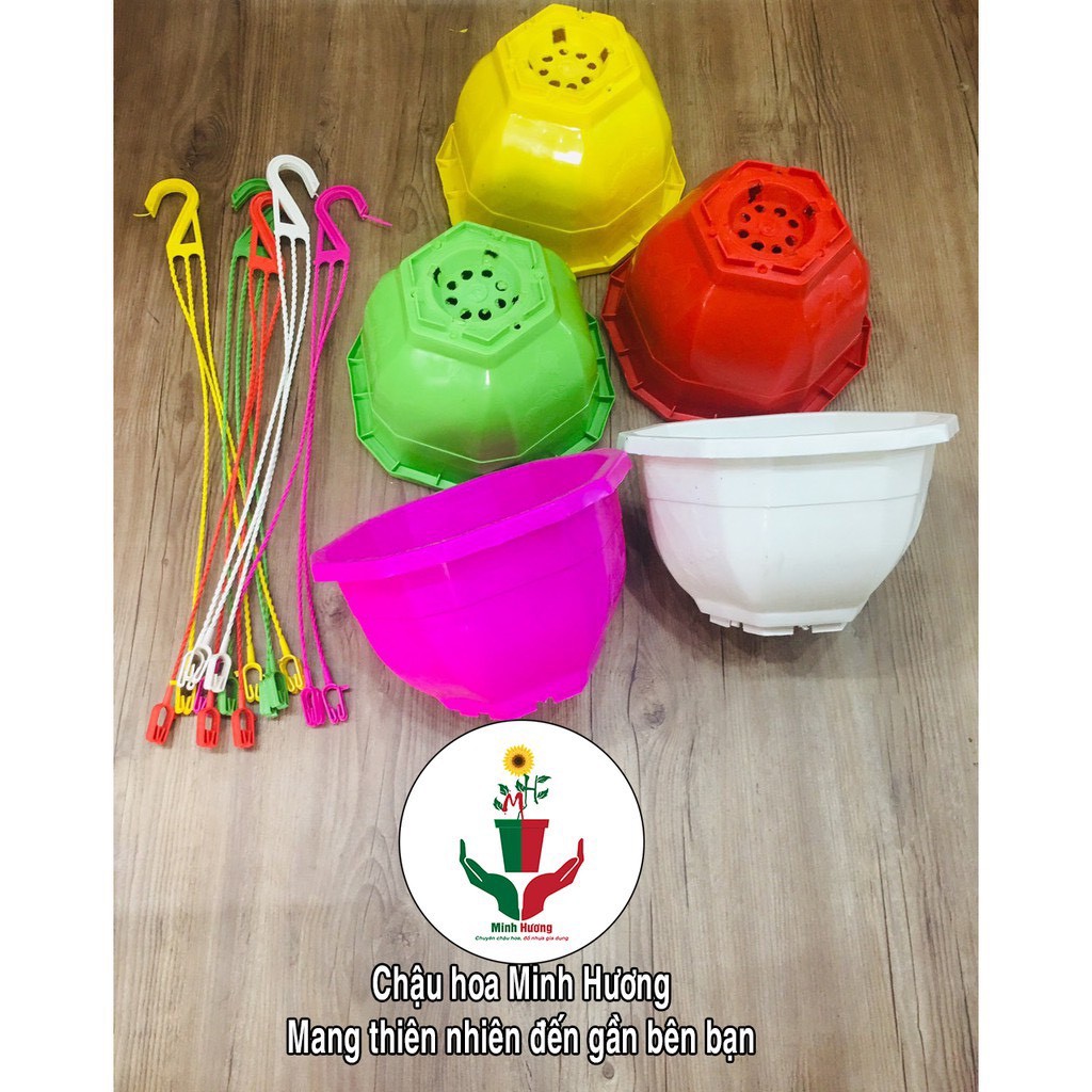 Combo 10 chậu + 10 dây treo,kích thước chậu (miệng rộng 22cm, cao 14cm, đáy 15cm)