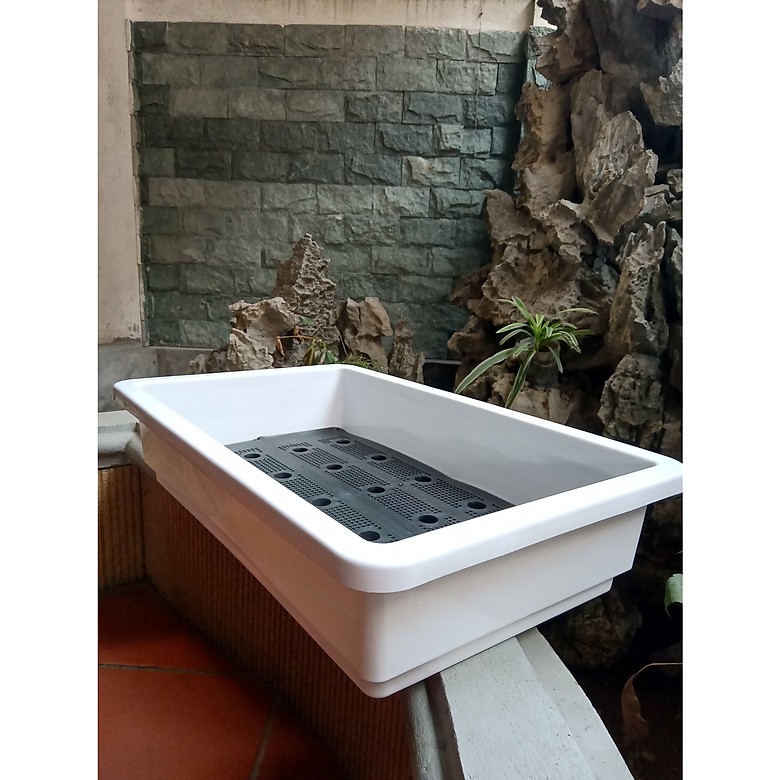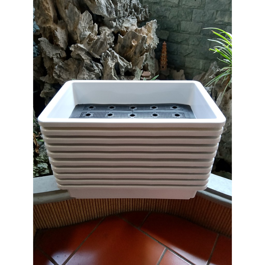 - Chậu nhựa trồng rau thế hệ mới – kích thước (65x42x16cm) gồm có chậu và tấm lưới thoát nước rất thích hợp dùng trồng rau mầm, rau ăn lá, trên ban công sân thượng- Số lượng 10c màu trắng