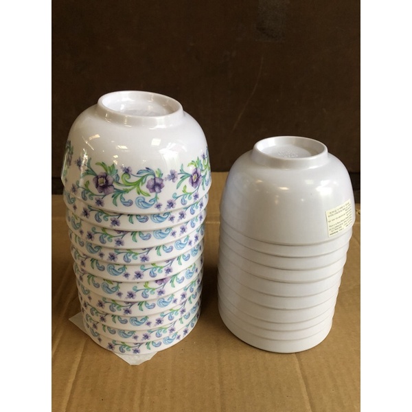 Nhà cửa & Đời sống > Bộ đồ bàn ăn > Tô || 10 chén cơm nhựa tốt có hoa văn và trắng trơnCòn hàng