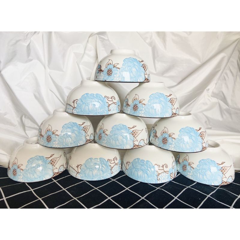 Nhà cửa & Đời sống > Bộ đồ bàn ăn > Tô || Bộ 10 chén sứ ăn cơm cao cấp hoạ tiết 3D, miệng chén kẻ chỉCòn hàng