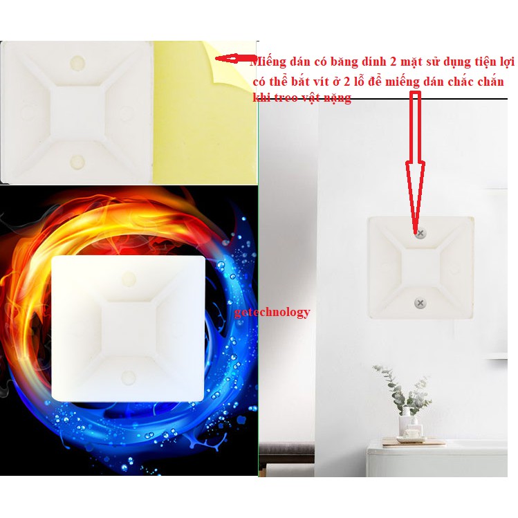 ĐẾ DÁN CỐ ĐỊNH DÂY ĐIỆN DÂY RÚT, DÂY THÍT NHỰA NIÊM PHONG, gối đỡ dây điệnSản phẩm không phù hợp sử dụng dán trên bề mặt kìm loại như nhôm, sắt, quá trơn...