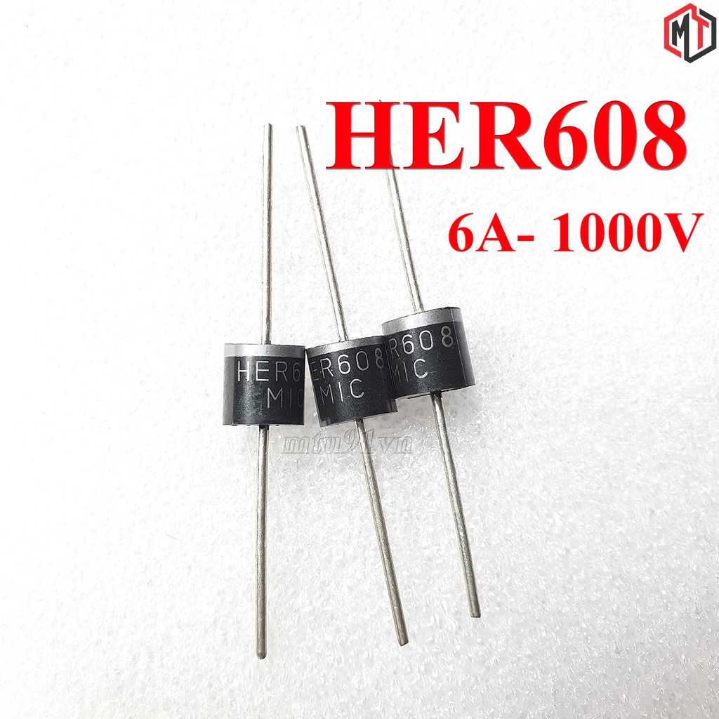 Diode xung HER608 6A 1000V- Diode là 1 loại linh kiện bán dẫn chỉ cho phép dòng điện đi qua nó theo một chiều mà không theo chiều ngược lại.