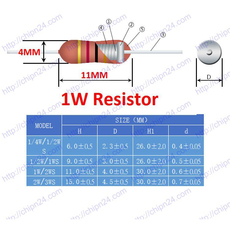 - Điện trở cắm 1W
