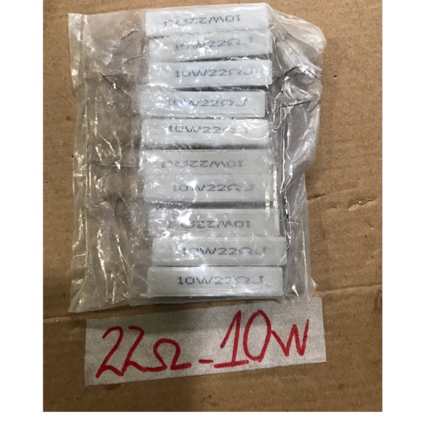 #Trosucongsuat10W-Sản phẩm gồm 10 con trở sứ công suất 10W 22 ôm .Ứng dụng có tác dụng ngăn cản dòng điện lớn . -Giá cả tốt