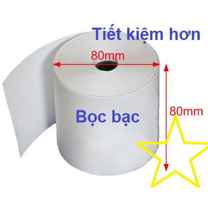 - Kích thước bề rộng là ~ 80mm và có đường kính cuộn giấy là 80mm.
