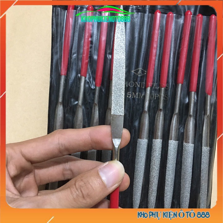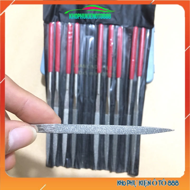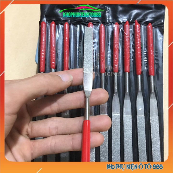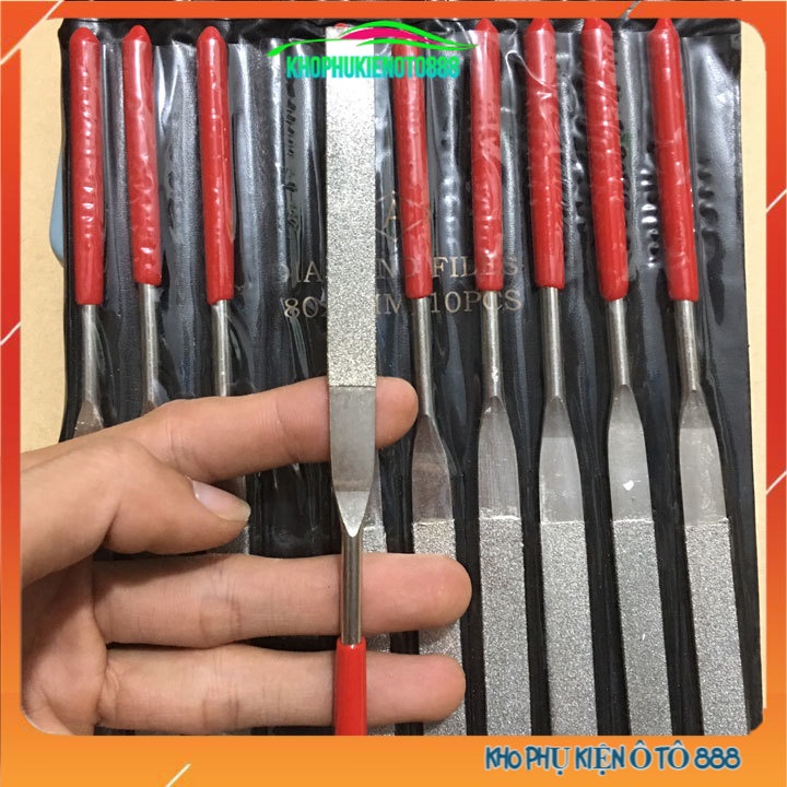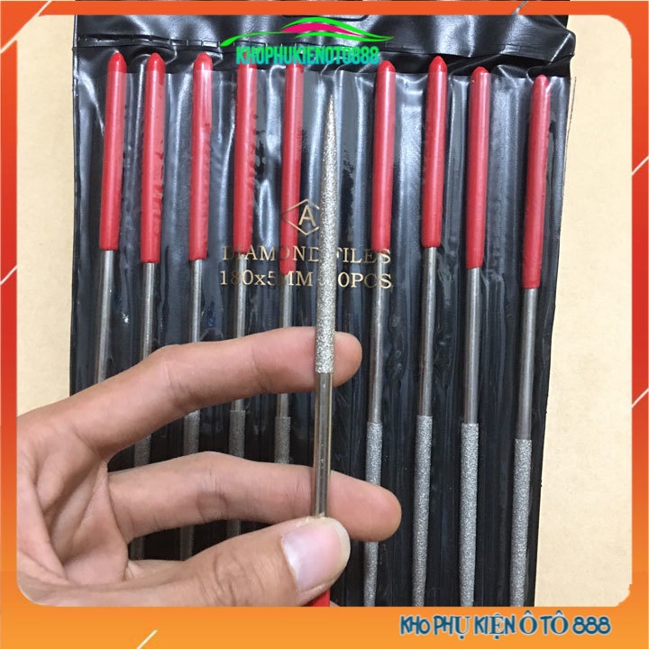 Bộ 10 đầu mài kim cương dũa kim loại 180x5mm mũi tam giác, dẹt, lòng mo, tròn