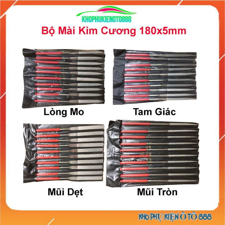 Giới thiệu Bộ 10 đầu mài kim cương dũa kim loại 180x5mm mũi tam giác, dẹt, lòng mo, tròn