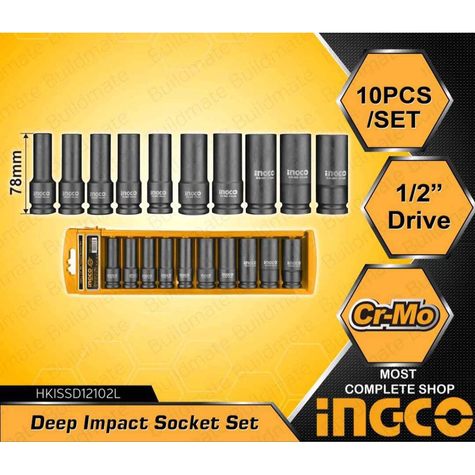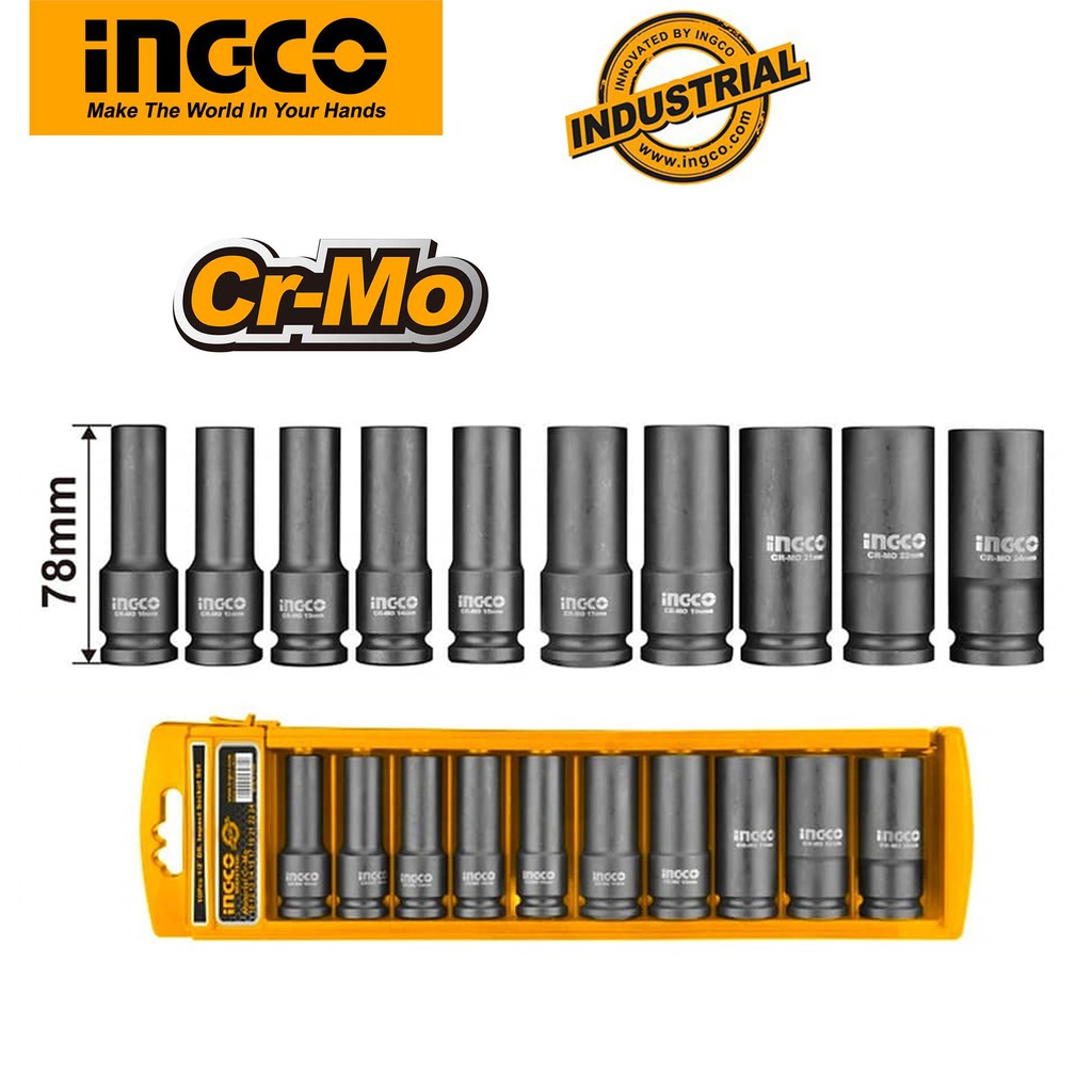 Bộ 10 đầu tuýp Deep Impact DR 1/2 inch Ingco HKISSD12102L- Kích thước: 10.12.13.14.15.17.19.21.22.24 mm