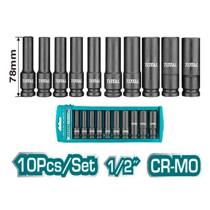 Bộ 10 đầu tuýp Deep Impact DR 1/2 inch Total- Kích thước: 10.12.13.14.15.17.19.21.22.24 mm