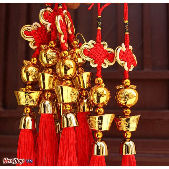 - Với tông màu chủ đạo là đỏ - vàng rực rỡ, bắt mắt, dây treo Tết không những là vật dụng trang trí ấn tượng mà còn là món quà xuân đem đến nhiều tài lộc, may mắn cho gia chủ.