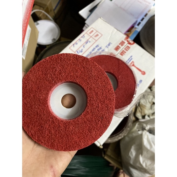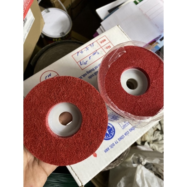 Đĩa đánh bóng (Hay còn gọi:xốp đỏXốp đánh bóng dùng cho máy mài cầm tay. Được làm từ nhiều lớp kết cấu lưới nylon ép ở nhiệt độ cao cùng phụ gia cao cấp và keo đặc biệt. Không giới hạn tốc độ máy, dễ dàng sử dụng. Được cấu tạo dưới dạng kết cấu mở có khả năng kháng nhiệt khi ở nhiệt độ cao vì vậy không gây cháy bề mặt hoặc làm biến dạng sản phẩm.