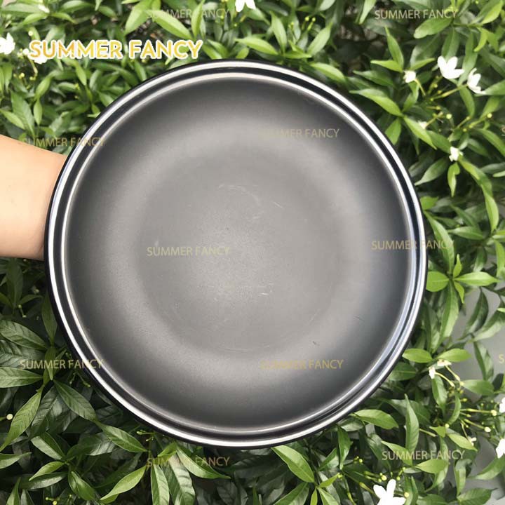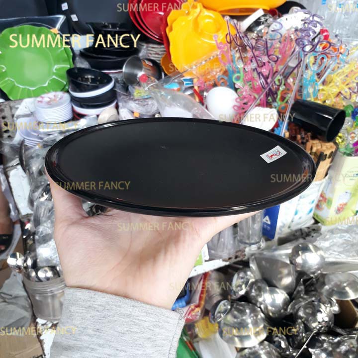 Giới thiệu 10 Dĩa tròn 18.5 x 1.9 cm nhựa melamine phíp nhám đen ngói - Plate dish F-DA07N