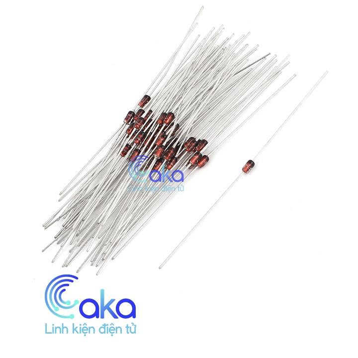 Diode 1N4148 450mA 100VDiode 1N4148 được đóng gói theo chuẩn DO-35, Diode 1N4148 kích thước nhỏ có vỏ bằng thuỷ tinh và còn gọi là diode tiếp điểm vì mặt tiếp xúc giữa hai chất bán dẫn P – N tại một điểm để tránh điện dung ký sinh, diode tách sóng thường dùng trong các mạch cao tần dùng để tách sóng tín hiệu.