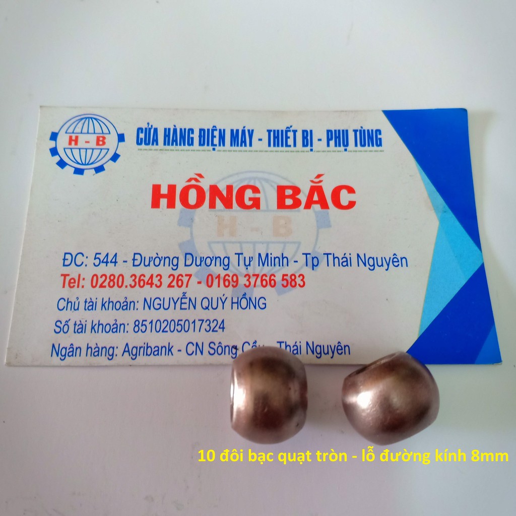 10 đôi bạc quạt tròn- đường kính lỗ 8mmĐiện Máy Hồng Bắc là nhà phân phối phụ tùng Điện Cơ uy tín, cam kết cung cấp các phụ tùng chất lượng tốt, với giá thành hợp lý.