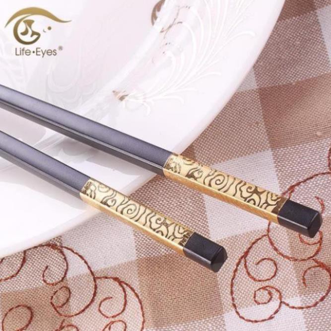 Bộ đũa hợp kim cao cấp chống mốcBộ 10 đôi đũa khảm vàng hợp kim